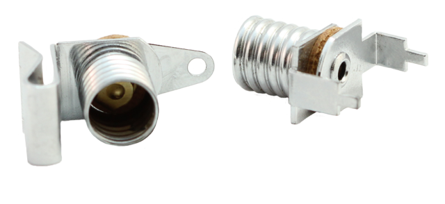 We carry a selection of miniature lampholder configurations and can customize any part of the component to fit your application specifications. Aeronautical Electric's miniature lampholders can be manufactured with screw bases or bayonet bases and insulated or uninsulated. The miniature lampholder is commonly used in panel backlighting such as in pinball or slot machines. It can also be combined with a lens assembly for use as an indicator light in applications such as transformer lockout switches or guitar amplifiers. The miniature lampholder is available with one or two terminals, either solder, screw, printed circuit Board, 3/16” quick disconnect, or customized connection types.